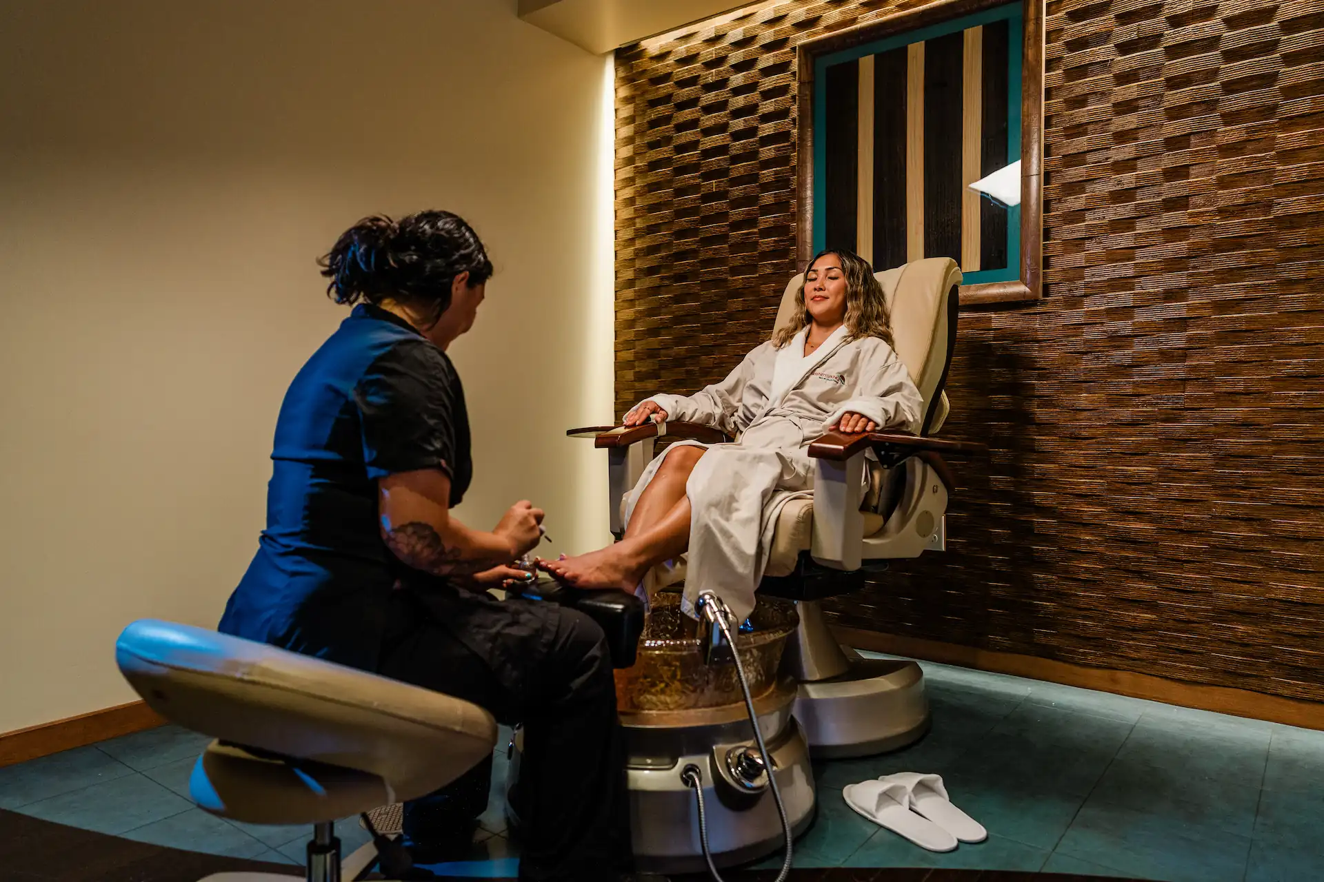 Our 50-minute Swedish full body massage, customized facial, ultimate manicure and pedicure, hair style, makeup application and complimentary spa lunch.